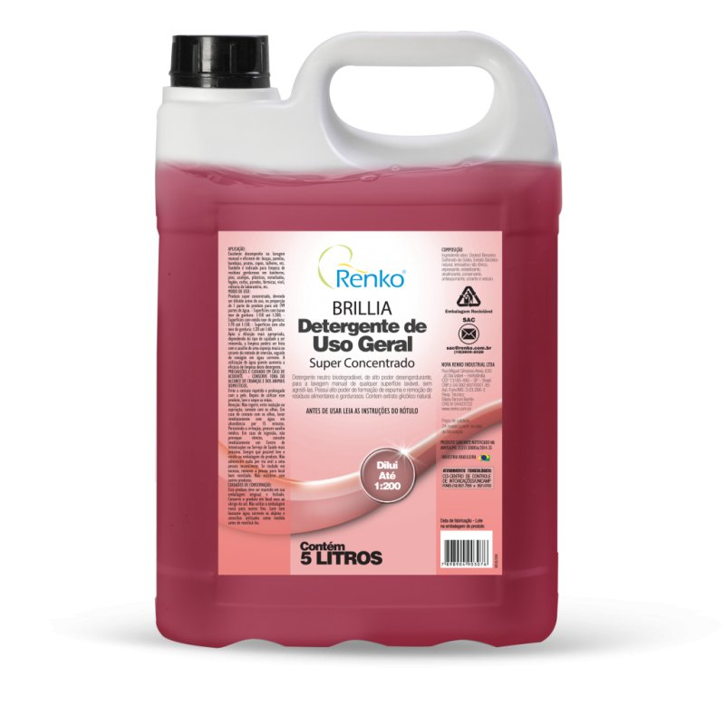 Detergente neutro, desengordurante, indicado para qualquer superfície lavável. Possui alto poder de formação de espuma que auxilia na retirada de resíduos alimentares e gordurosos de origem animal ou vegetal; também é de fácil enxágue. Contém tensoativos biodegradáveis que não agridem o meio ambiente.